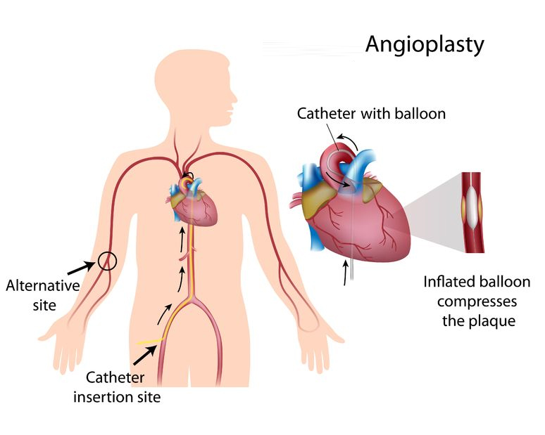 Doctors usually perform this procedure while you are under local anesthesia. First, they make an incision in your arm or groin. Then they insert a catheter with a tiny inflatable balloon on the end into your artery. Using X-ray, video, and special dyes, your doctor guides the catheter up into the blocked coronary artery. Once it’s in position, the balloon is inflated to widen the artery. The fatty deposits, or plaque, get pushed against the wall of the artery. This clears the way for blood flow.